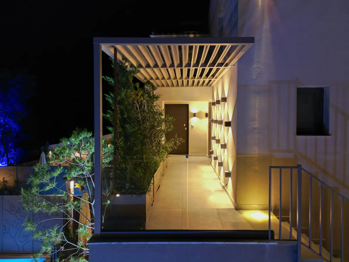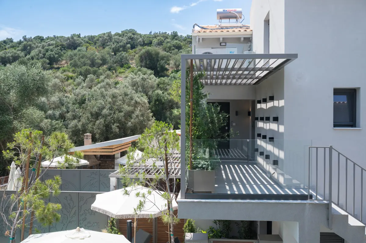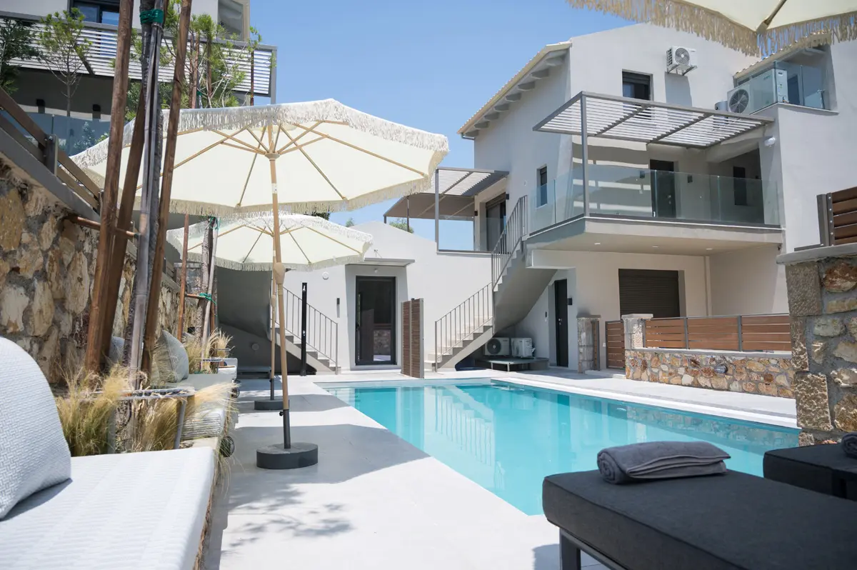 Έχει εύκολη πρόσβαση στην κοινόχρηστη πισίνα όπου μπορείτε να απολαύσετε το μπάνιο σας στις αναπαυτικές ξαπλώστρες. Στην κατάφυτη με λουλούδια ιδιωτική βεράντα θα βρείτε το υπαίθριο τζακούζι με υδρομασάζ και ένα αναπαυτικό σαλόνι, ιδανικός χώρος για χαλάρωση, ξεκούραση και όμορφες βραδιές κάτω από τα αστέρια.